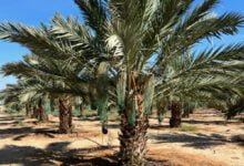 تم استحداث تقنية تغطية العذوق بالكامل بالشاش الابيض (الموسلين) كاحد اساليب المكافحة المتكاملة لمكافحة آفات ثمار النخيل (شكل4 ) ، حيث بينت النتائج القدرة على المحافظة على الطلوع والعذوق من الإصابة بأي آفة حشرية بالإضافة لوجود ميزات إنتاجيه من زيادة حجم ونوعية الثمار(شكل5) .