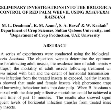 Biology and Control of the Dubas Bug, Ommatissus binotatus Lybicus De Berg. (Homoptera, Tropiduchidae), Infesting Date Palms in Iraq