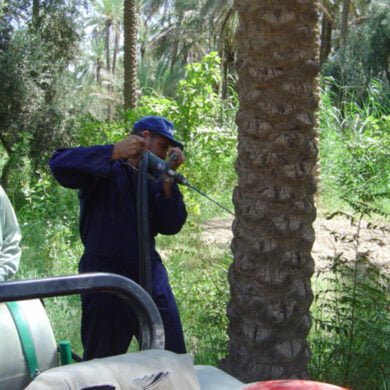 آلة هيدروليكية مصنعة محلياً لحقن جذوع اشجار النخيل بالمبيدات