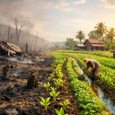 إحياء المزارع بعد الحرق أو التحطيم (وآية لهم الأرض الميتة أحييناها)
